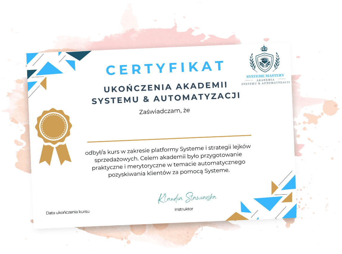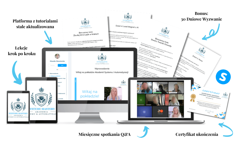 Zatem jeśli chcesz uporządkować swój biznes, przestać zgadywać i mieć sprawdzony system zamiast presji, dołącz do Akademii Systemu i Automatyzacji i zrób wreszcie porządek, który pozwoli Ci iść dalej.